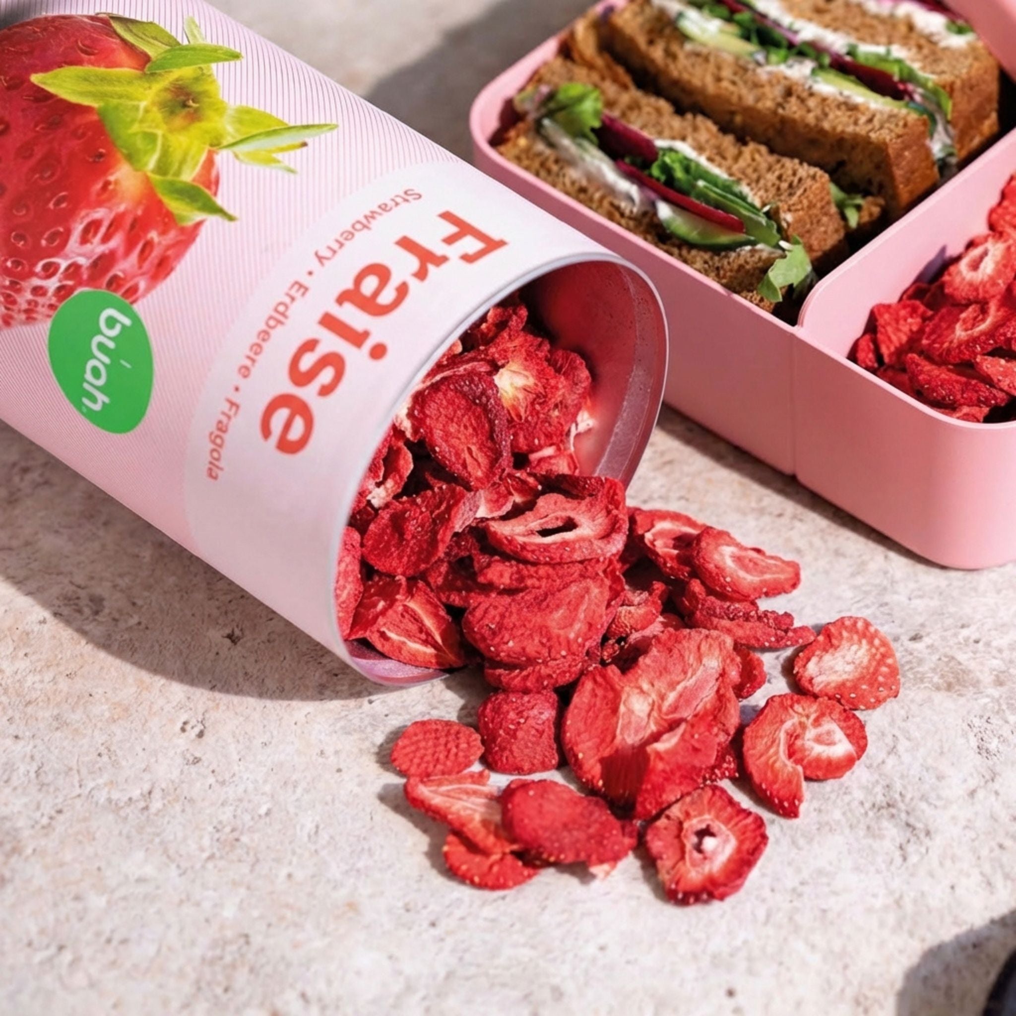 Les fruits de Buah sont non seulement croustillants, mais aussi plus intenses dans le goût. Cela est dû à la plus faible teneur en eau. Nos fruits lyophilisés ne contiennent aucun additif et respectent la plus haute qualité.