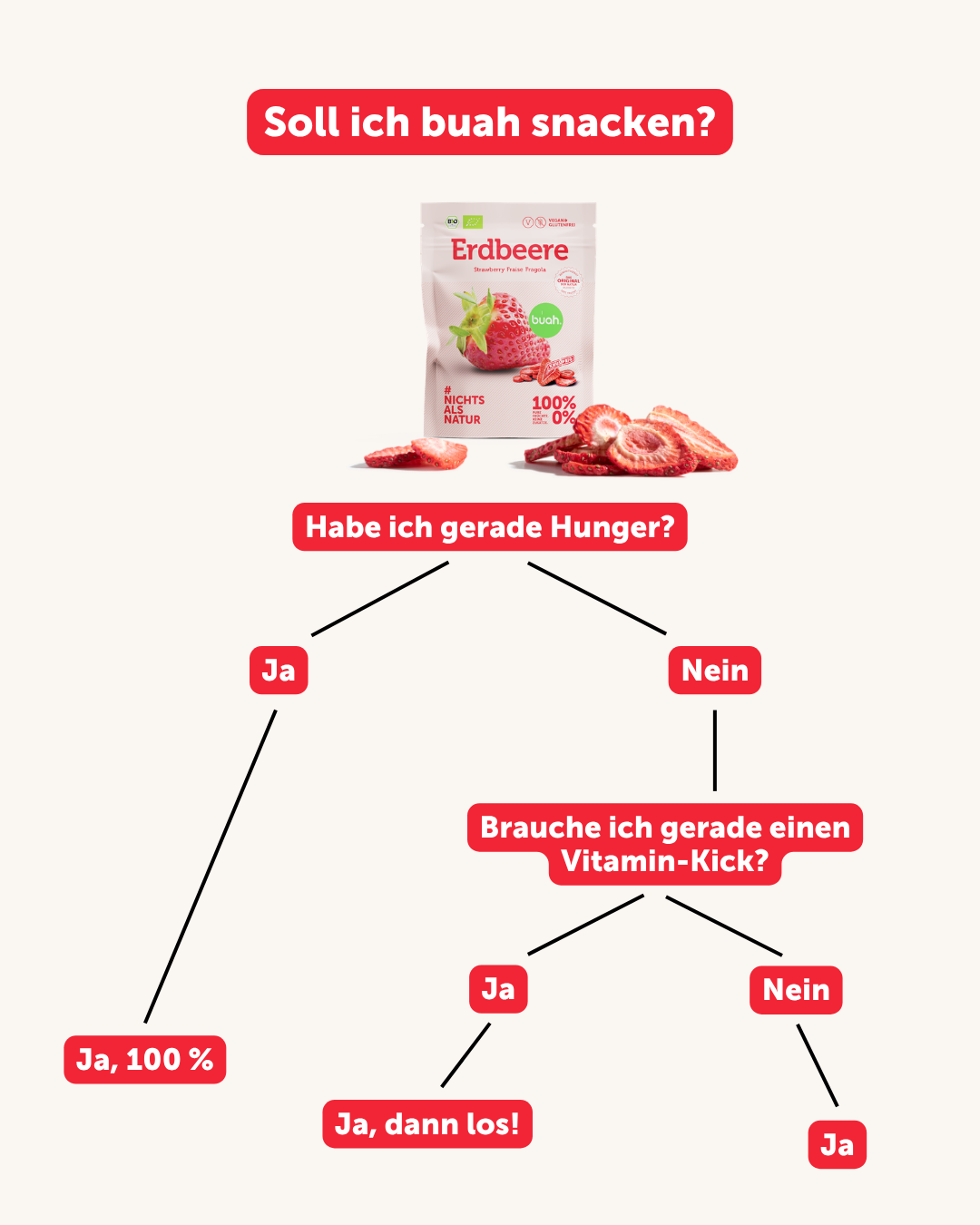 Il n'y a guère de choses plus importantes dans la vie que la santé et le bonheur. Et parce que le bien-être commence dans l'assiette. Chez buah, nous voulons être certains de n'y introduire que des éléments sains.
