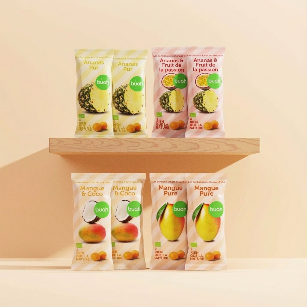 Vous pouvez désormais trouver une sélection de produits buah dans le commerce. La disponibilité peut varier selon les magasins.