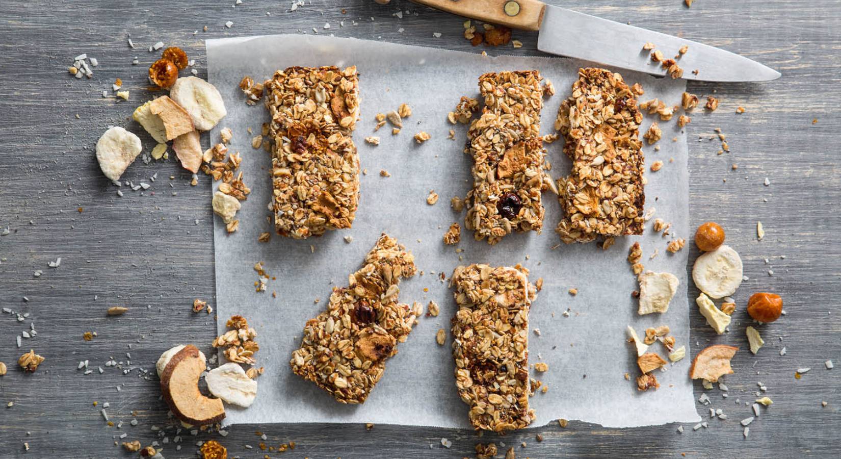 7. Die gebackene Masse aus dem Ofen nehmen, 15 Minuten abkühlen lassen und in gleichmäßige Riegel schneiden.