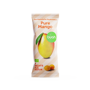 Bonbons à mâcher à base de pur fruit : voici ce que contiennent nos boules fruitées bio à la mangue.