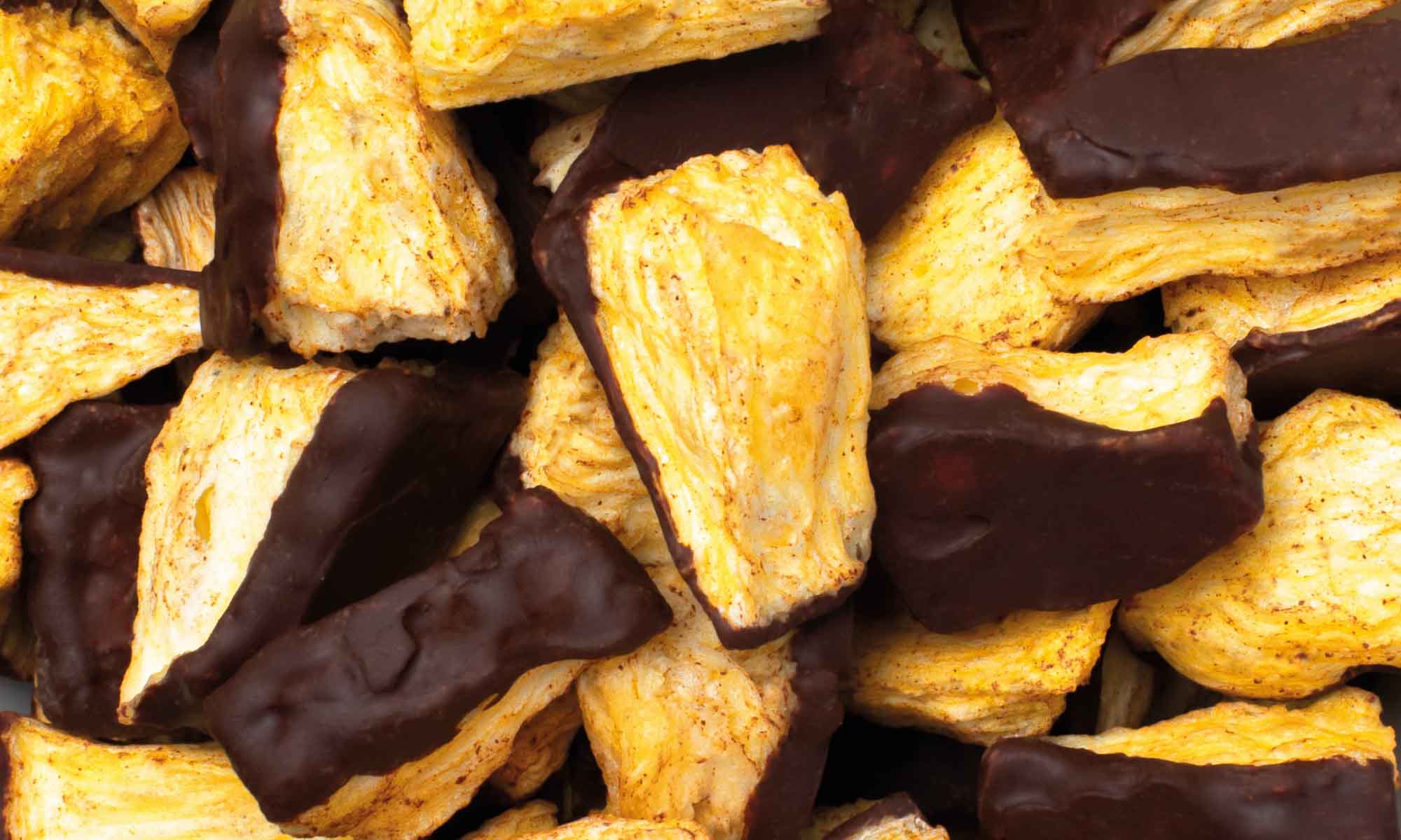 Ananas séché au congélateur 69%, produit de cacao 31% (à partir de 100% de fèves de cacao **)
